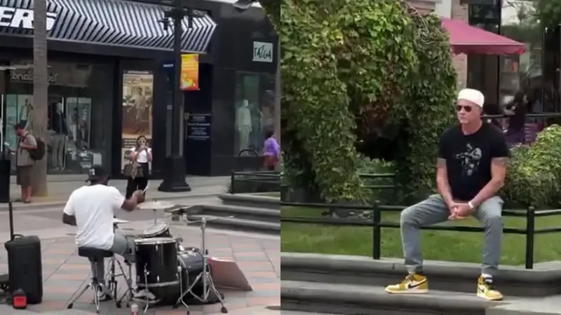 Уличный барабанщик исполнил хит RHCP, не зная, что за ним наблюдает участник группы