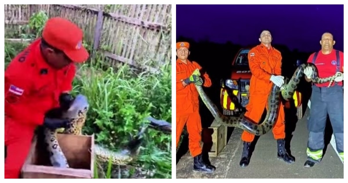 В конце концов один мужчина поймал змею руками и стал заталкивать в контейнер. Пожарным пришлось приложить немало усилий, но они смогли одолеть извивающуюся анаконду. Их сражение с рептилией попало на видео. В итоге змею вернули в дикую природу.