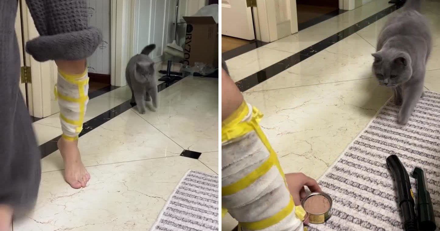 Кот, наблюдая за тем, как с больной ногой хозяина окружили заботой и вниманием, решил, что тоже достоин порции ласки. И вот, словно опытный актер, он начал прихрамывать на переднюю лапку, надеясь вызвать сочувствие и получить свою долю тепла и лакомства.