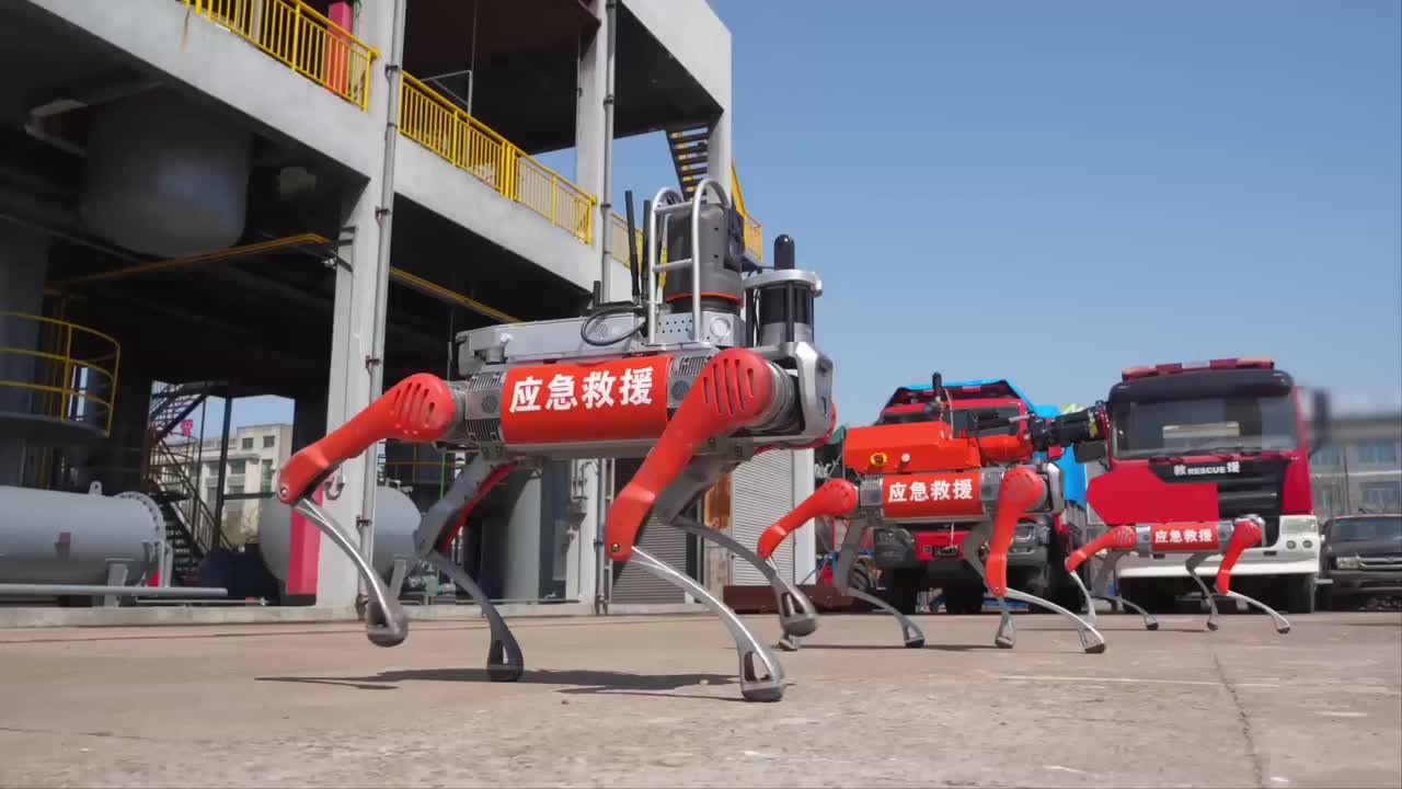 В основе модель Unitree B2, но с устойчивым к экстремальным температурам корпусом и креплениями для водомёта и не только. Сейчас псов тестят в Циндао, а потом хотят снабжать ими пожарные части по всей стране.