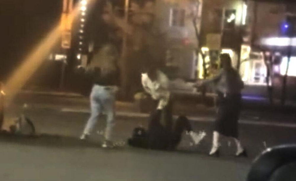 На кадрах видно, как мужчина бьет женщину, после чего она падает на дорогу. Далее на записи видно, как нарушитель избивает женщин по очереди: приморец наносит удары в голову и пинает.