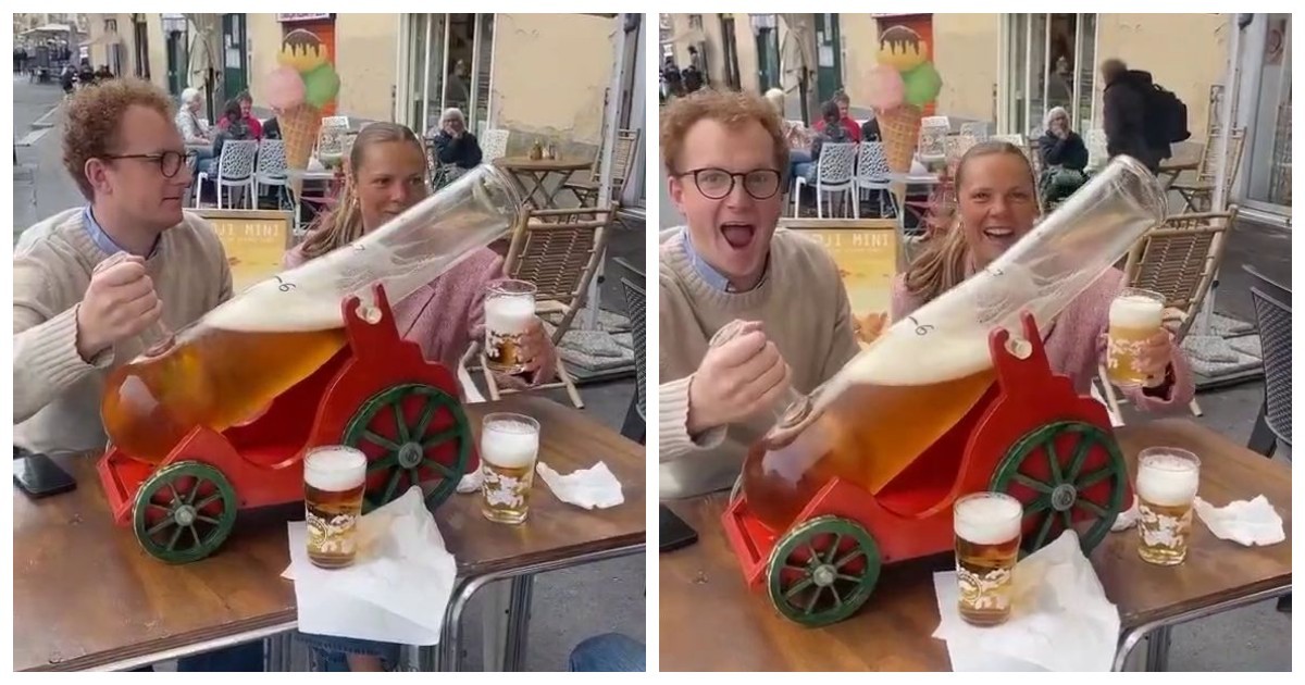 Настоящую пивную пушку обнаружили в Италии — миланский бар сделал эпичную подачу пенного на компанию из нескольких человек.