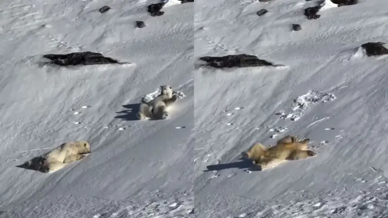 Арктические белые медведи нежатся под лучами весеннего солнца, а эти кадры станут настоящим сокровищем для ценителей дикой природы. Запечатленные в своей естественной среде, медведи резвятся и расслабляются на бескрайних снежных равнинах, раскрывая свою игривость.