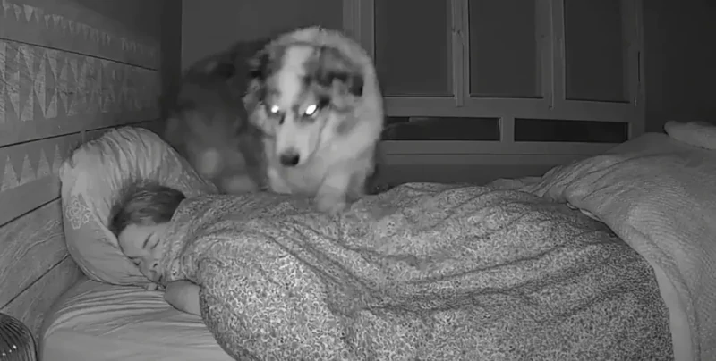 На видео видно, как женщина крепко спит под одеялом, когда Рокки забирается на кровать, устраиваясь сначала на груди, а затем — прямо на голове хозяйки. В течение ночи он несколько раз меняет положение, но все равно остается на ней, словно охраняя или не желая отпускать ни на минуту.