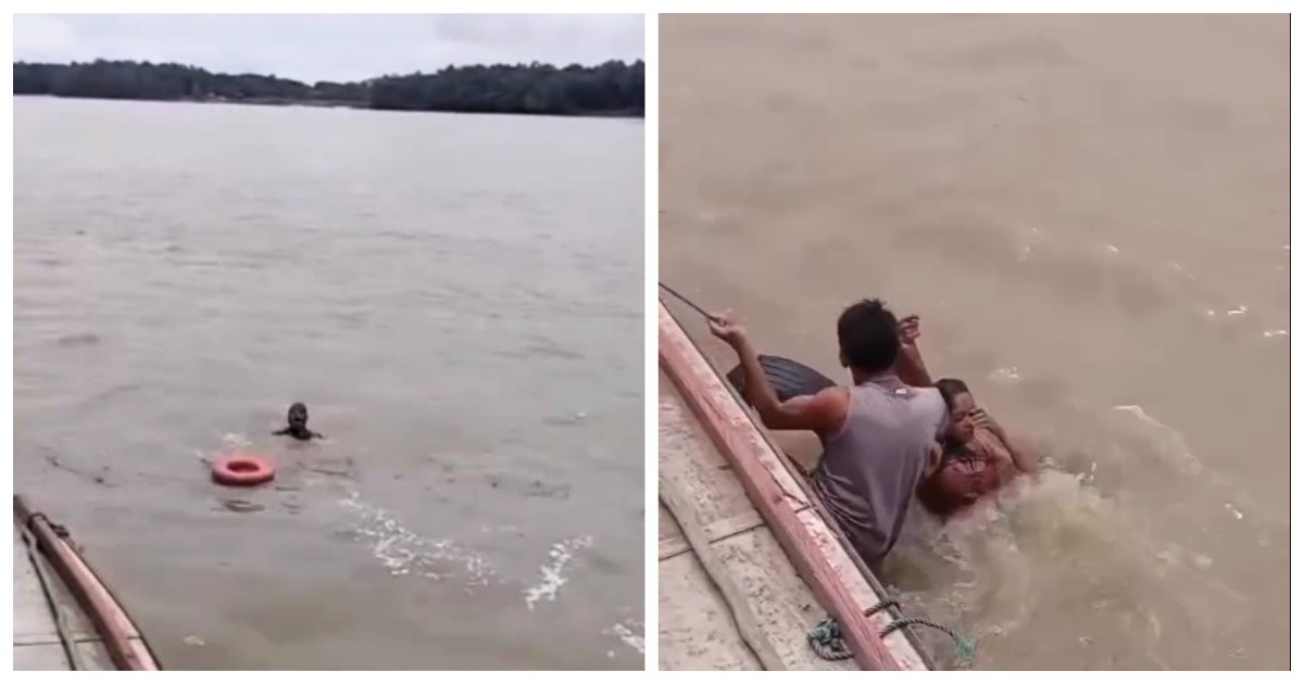 На видео попал момент, когда люди на лодке заметили девушку и бросили ей спасательный круг. Когда судно подошло ближе, один из членов экипажа зацепился за борт, перевесился через него и схватил почти захлебнувшуюся бразильянку за руку.
