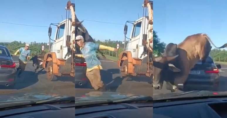 «Только посмотри на это! Как я объясню, что на мою машину прыгнул бык?»