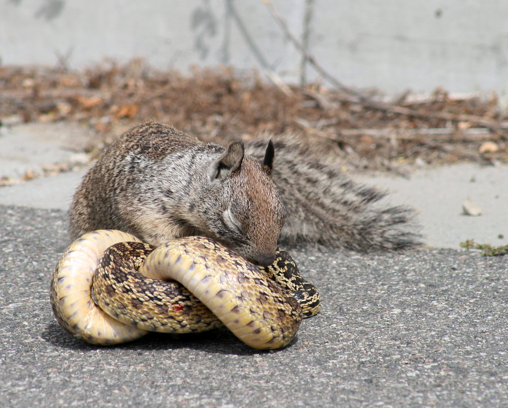 Помимо глаз, носа и слуха большинство змей используют для обнаружения добычи встроенный тепловизор. Специальные ямки улавливают тепло, которое исходит от жертвы. Очень удобно, когда у тебя нет лапок и весь обзор перекрыт травой. Но калифорнийские суслики научились использовать фичу змеи на собственное благо.