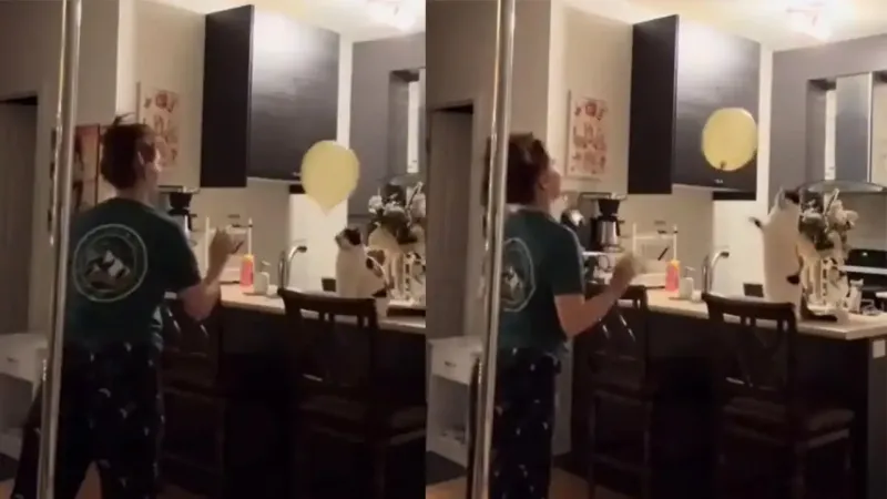 На обычной кухне прошел самый милый волейбольный матч на свете. С одной стороны — кошка, а с другой ее хозяйка. Вместо мяча у спортсменок — воздушный шарик, а вместо судьи — камера, фиксирующая каждое движение.