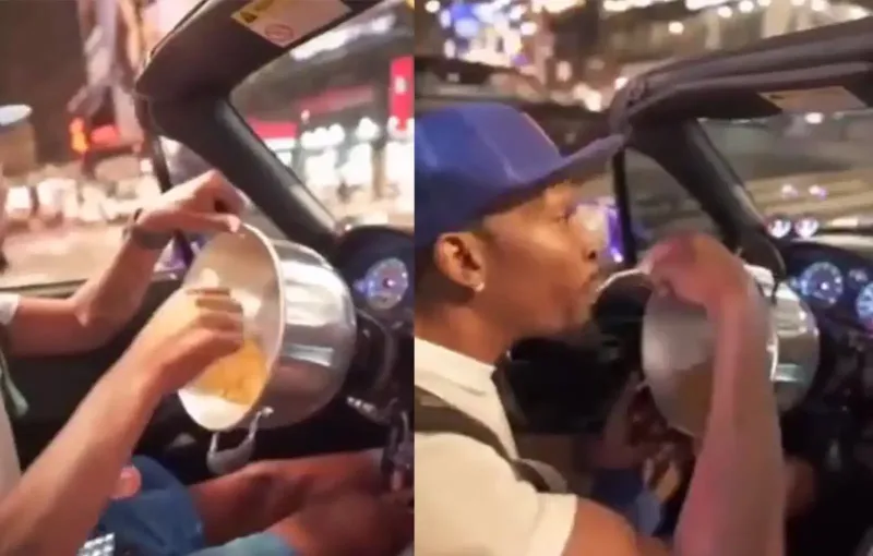 На фоне всего этого абсурда парень остается невозмутимым, будто всегда так и ездил — завтрак в салоне, обед на ходу, ужин, вероятно, на развороте.