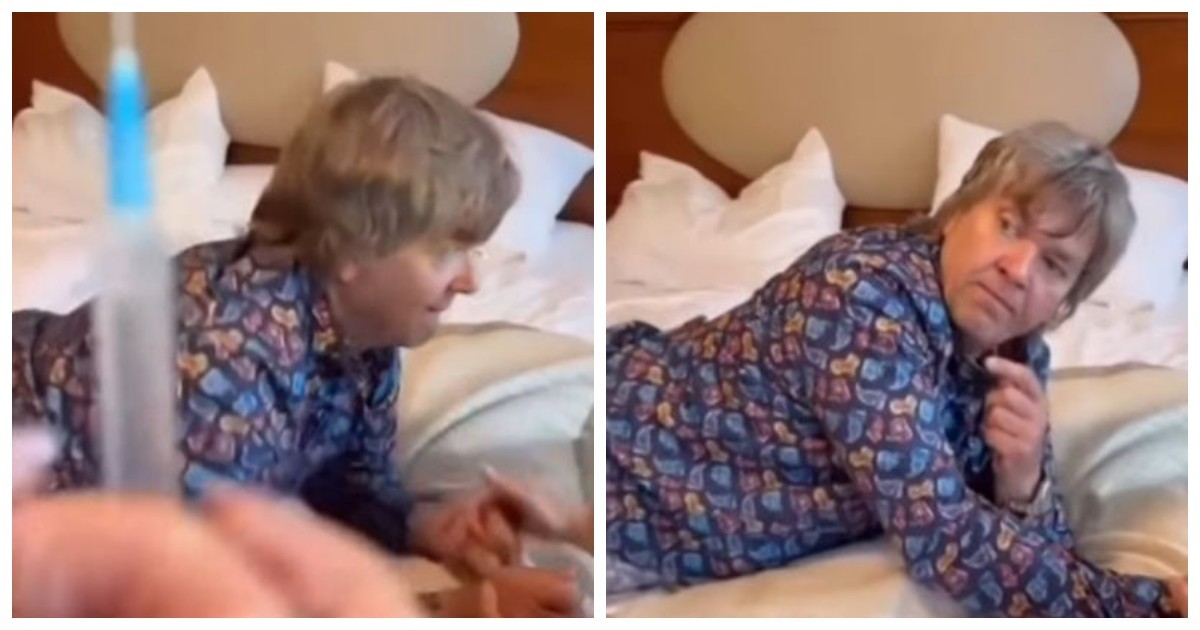 Владимир панически боится уколов: его тревога проявляется повышением давления, покраснением глаз и постоянными вопросами о безопасности процедуры. Несмотря на профессионализм медицинского работника, страх не отступает — он просит держать за руку, проверяет чистоту рук и переживает из-за размера иглы.
