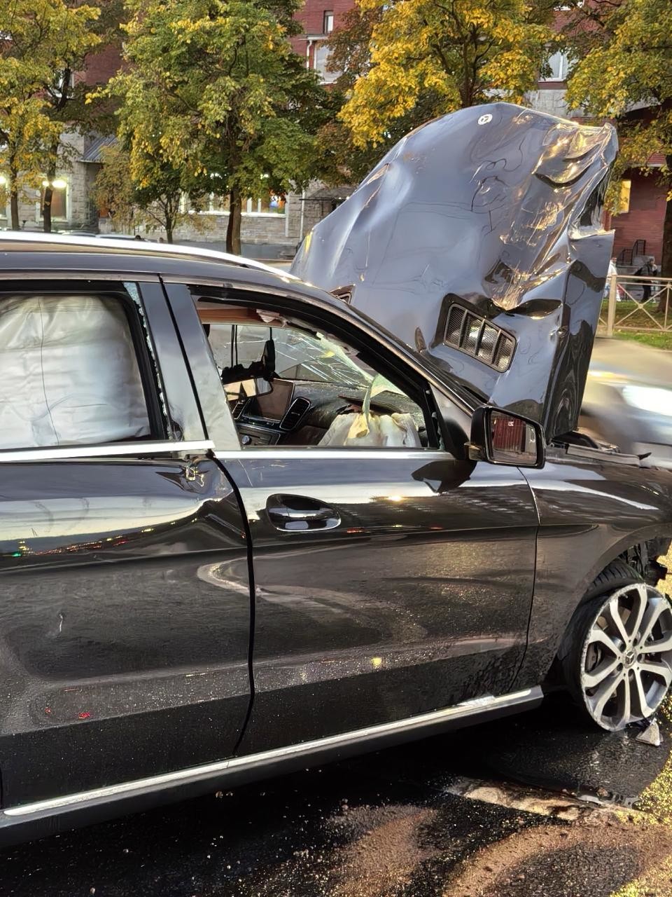За рулем была девушка. Даже видно, что она пыталась объехать белый автомобиль перед перекрестком. Или ей плохо стало, или с машиной что то не так было. Весь путь она была на аварийке.