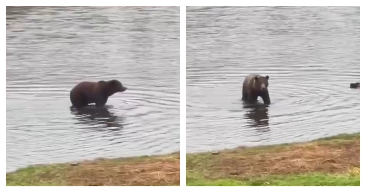 Рыбак уговаривает медведицу уступить место — Интересные новости