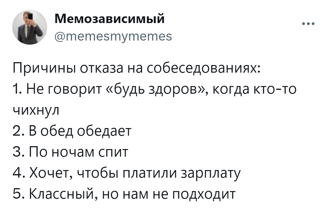 Тельцов не берём, вы болеете не за ту команду, вы слишком интересно рассказываете о прошлой работе, вам у нас будет скучно — эти и другие причина отказа в работе в нашем грустном посте.