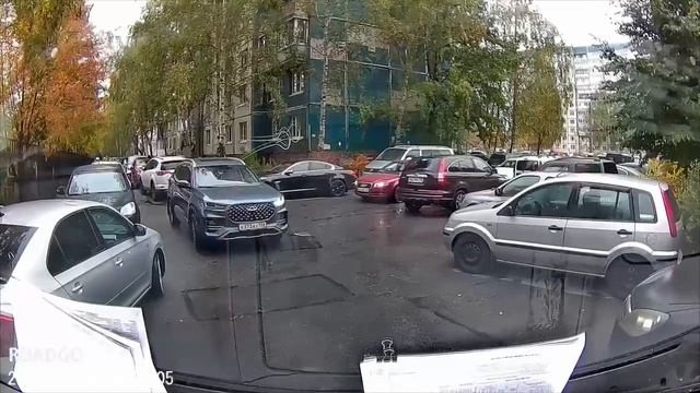 Водитель «Китайца» начал его пропускать и впечатался в припаркованный автомобиль, ну а что было дальше смотрите на видео….