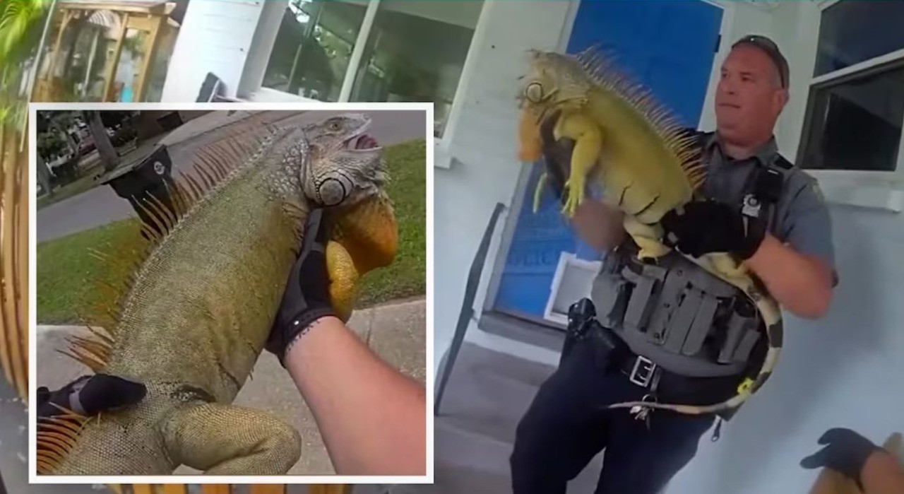 Для этих мест такое животное нехарактерно, поэтому полицейские считают, что игуана сбежала из домашнего террариума. Сейчас ищут хозяина беглеца.