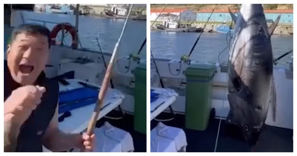 Рыбаки поймали у Курильских островов огромного тунца. Об этом сообщает Telegram-канал Amur Mash.