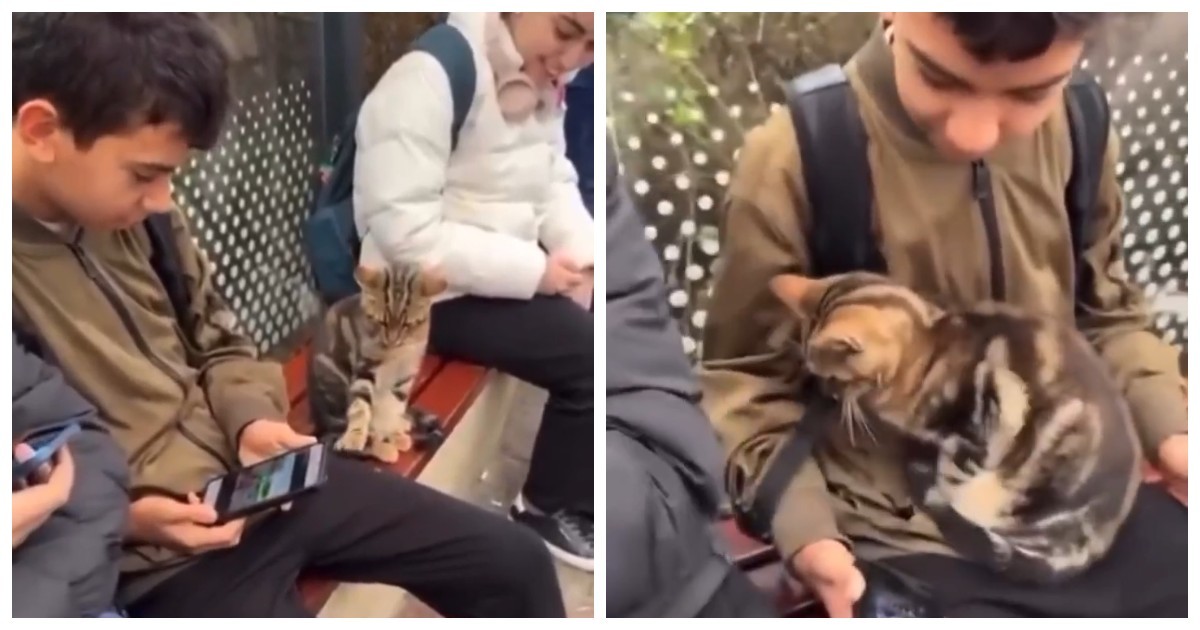 Маленький кот протянул лапку, едва касаясь парня, словно спрашивая: «Можно?» — и, получив молчаливое одобрение, уютно устроился у него на коленях.