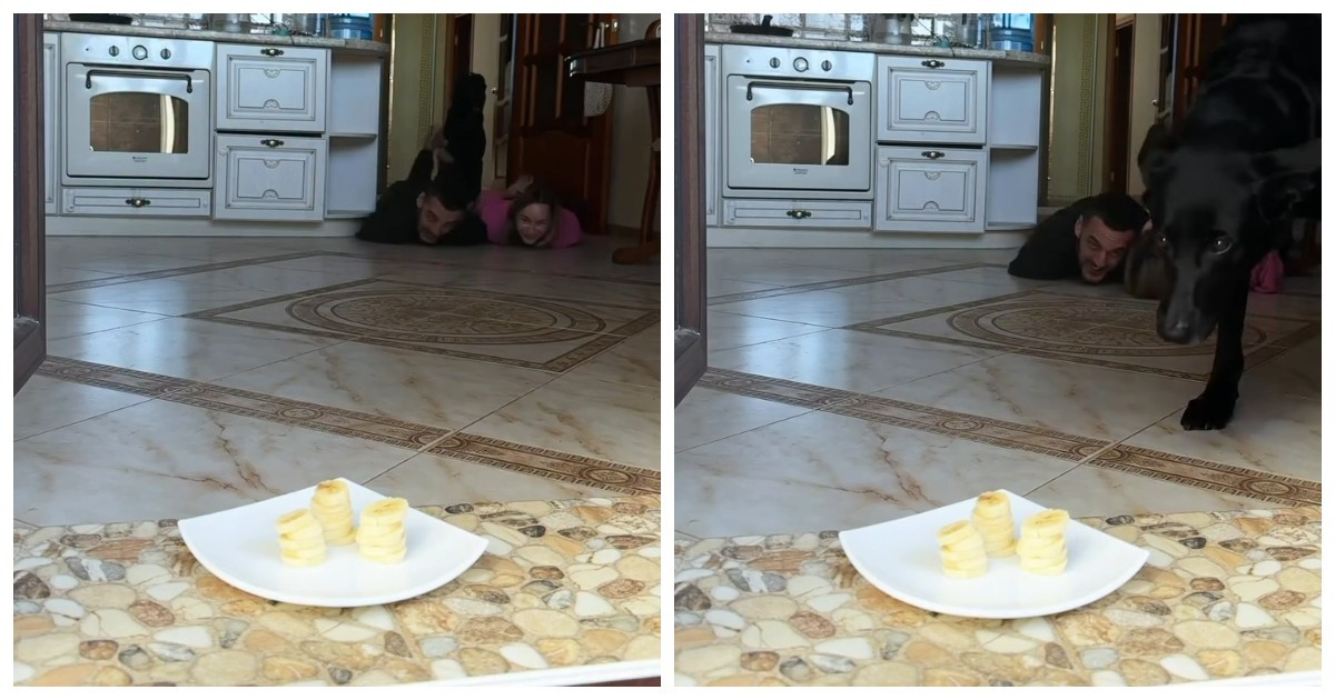 Любовь и вкусняшки! Пара решила проверить свои навыки в челлендже, пытаясь доползти до миски с лакомством без помощи рук. Но их планы нарушила хитрая собака, которая решила, что лакомство принадлежит ей.