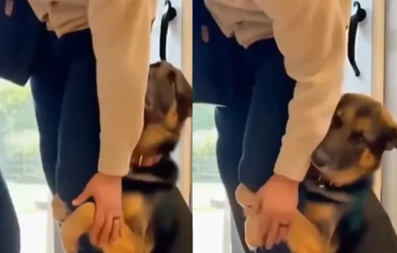 Пёс не хочет отпускать хозяина на работу — Интересные новости