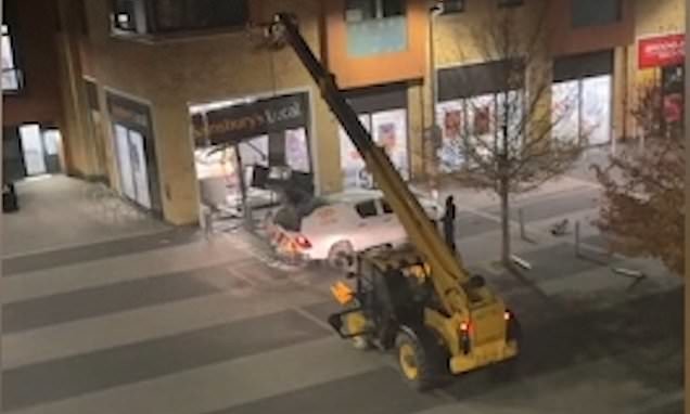 В Великобритании банда грабителей вырвала банкомат из магазина с помощью строительного погрузчика