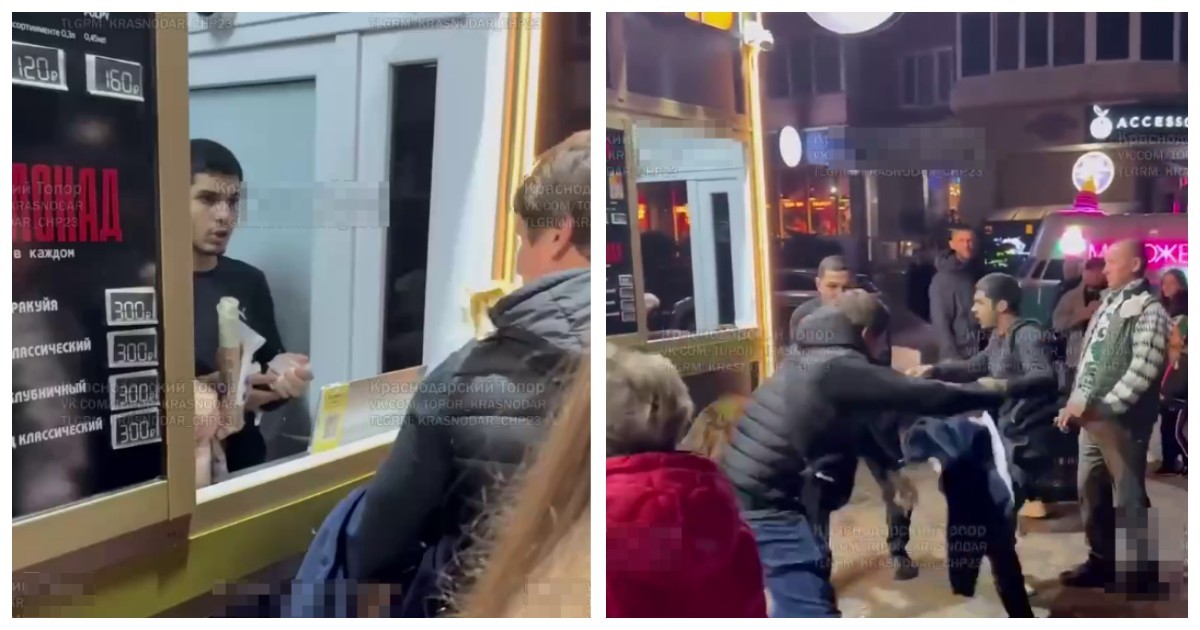 Сначала покупатель просто спорил, затем в ход пошла сама шаурма. На видеозаписях, опубликованных в соцсетях, видно, как стороны кидаются друг в друга продуктом, и фрагменты блюда летят в разные стороны, попадая на других посетителей.