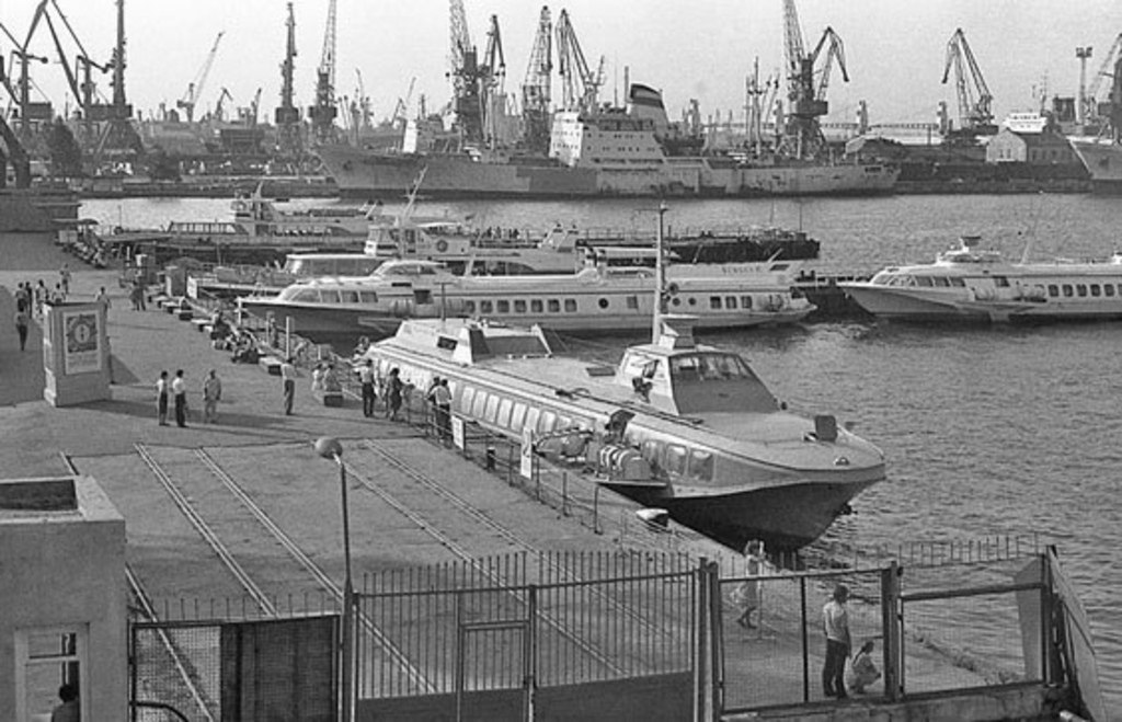 В Одессу суда на подводных крыльях пришли в 70-х. В 1974-м году открыта линия Одесса – Херсон. За 2 часа 40 минут суда проходили расстояние, которое современная маршрутка идет почти 4 часа. И стоило это тогда 4 с половиной рубля. Сначала линия Одесса – Херсон работала с двумя отправлениями в день – в 8 и 15 часов. В Одессу ходили исключительно «Кометы», позже к ним добавились «Колхиды» – единственные массовые типы советских морских судов на подводных крыльях. Ходили они со средней скоростью 30-35 узлов (55-65 км/час).