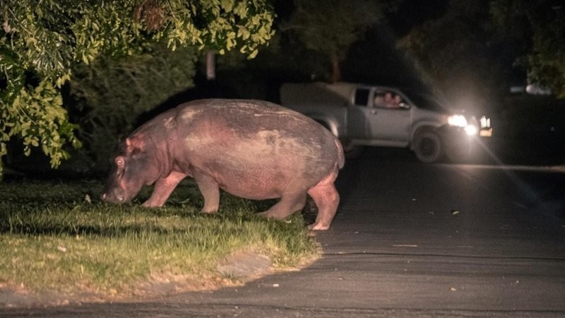Пробка по-африкански: два бегемота вышли на дорогу и остановили весь город