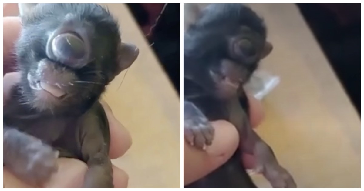 Необычное животное родилось с одним глазом посередине мордочки. По словам его хозяина, фермера Жилберто Алмейда, он увидел подобное впервые. Он объяснил, что мать котенка-циклопа рожала уже несколько раз, однако ни один из ее детенышей не был мутантом.