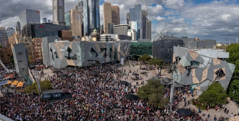 Интересно, что площадь, где произошел рекорд, расположена всего в нескольких минутах ходьбы от Melbourne Cricket Ground, где AC/DC в тот же вечер давали свой первый австралийский концерт за десять лет. Среди фанатов, которые ждали концерт, — 23-летний электрик из Огайо Киген Колер, который приехал в Австралию, чтобы увидеть группу на родине.