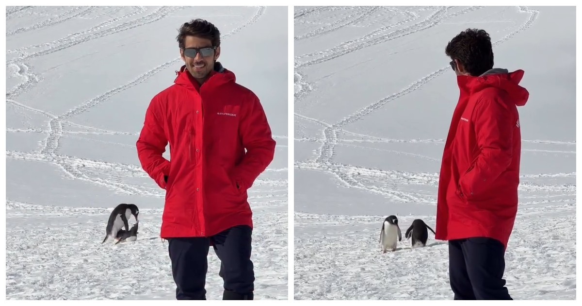Пока путешественник записывал спокойное видео на фоне ледяных просторов, позади него две птицы внезапно устроили бурное «выяснение отношений». Сцена быстро завершилась, и пара пингвинов даже сделала забавные поклоны, словно закрывая выступление.