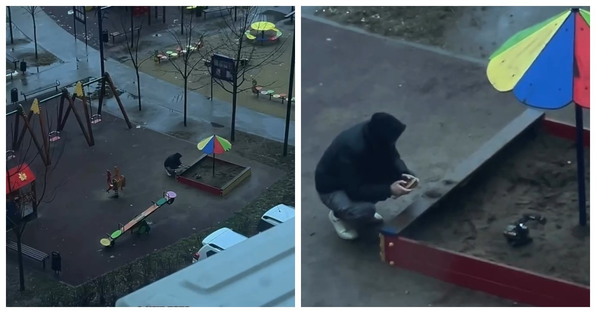Пока жена занята ребёнком дома, её муж решил «на минутку» протестировать игрушечный экскаватор на пульте управления и в итоге оказался сидящим в детской песочнице, полностью увлечённым процессом.