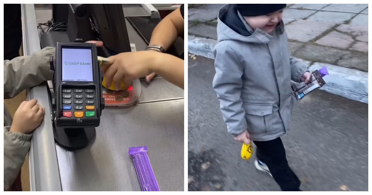 Малыш думал, что покупка обойдётся недорого, и достал свой кошелёк с радостью. Но когда оплатил покупку и увидел, что ушла почти вся сумма, ребёнок искренне расстроился.