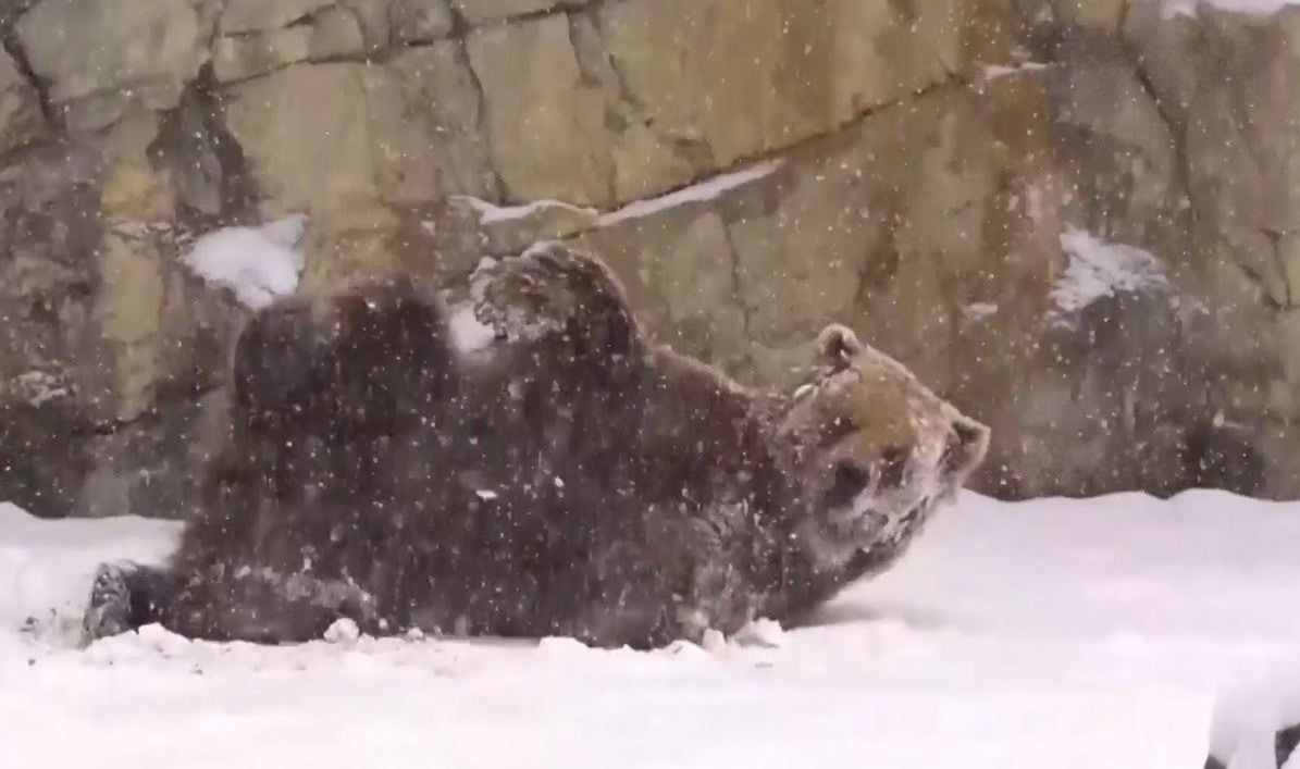 Первый снег в чикагском зоопарке порадовал медвежонка