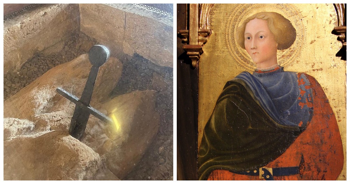 Рыцарь Гальгано, родившийся в 1148 году, вёл буйную и распутную жизнь. Перелом наступил, когда ему явился архангел Михаил. В поисках знака Гальгано заявил, что отречься от мирских благ так же трудно, как разрубить скалу. В подтверждение своих слов он ударил мечом по камню на холме Монтесиепи, и клинок вошёл в камень, словно в масло. Поражённый рыцарь воспринял это как божественное повеление и остался жить отшельником на этом холме до конца своих дней.