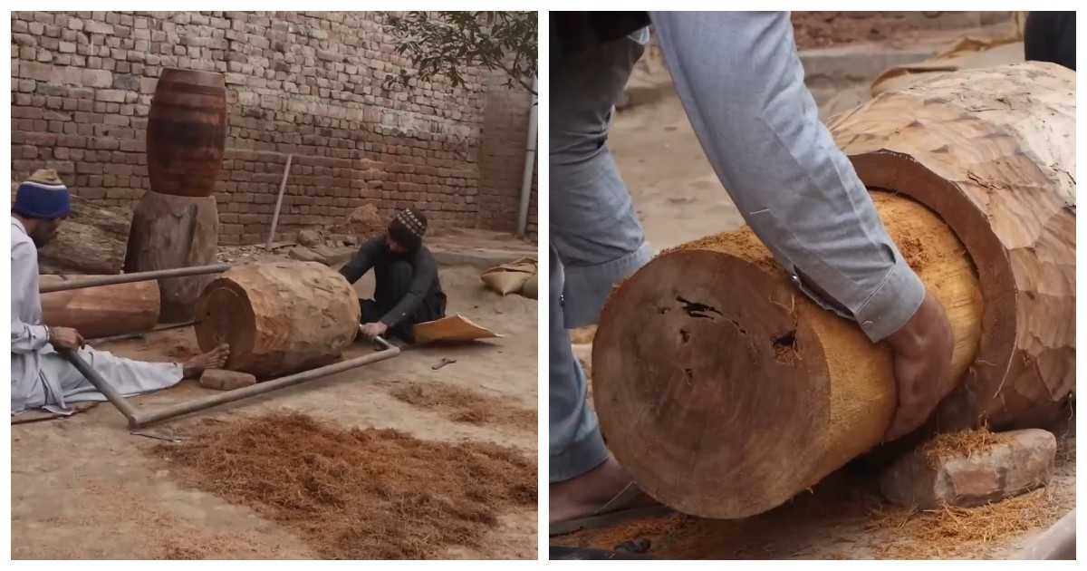 На видео показан традиционный процесс изготовления дхола — двухстороннего мембранного барабана, который широко используется в музыке Индии и Пакистана. Мастера вручную формируют корпус, натягивают кожу и настраивают инструмент, соблюдая технику, передаваемую из поколения в поколение.