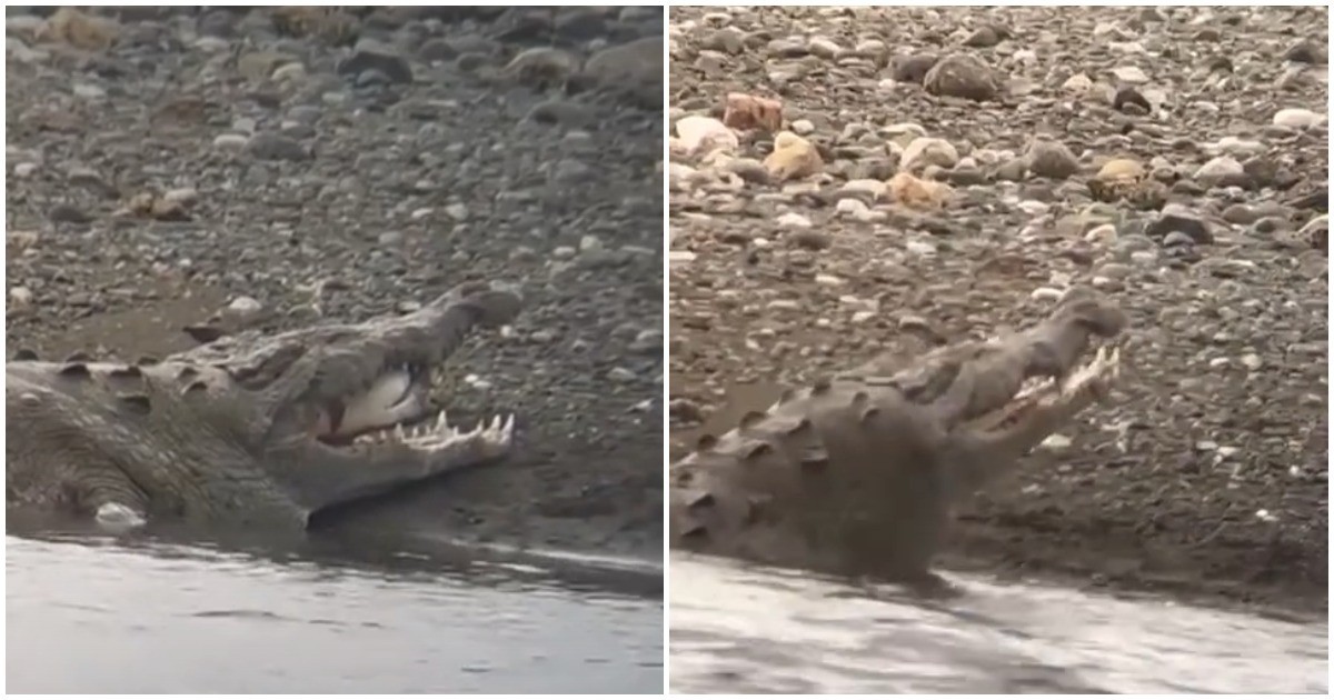 Он сразу привлек внимание туристов, и те заметили в его пасти акулу. Из-за ее небольшого размера Энрике предположил, что крокодил поймал детеныша. Вскоре хищник проглотил акуленка целиком и скрылся под водой.