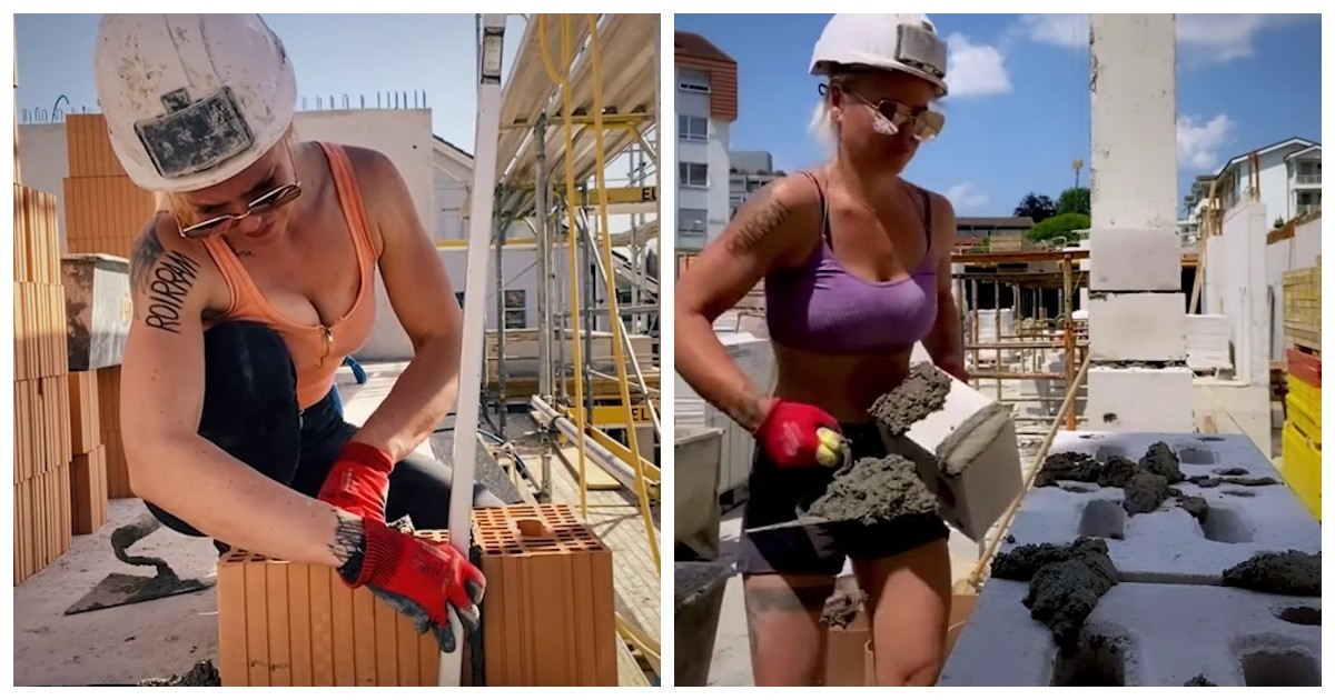 Женщина, работающая на стройке, сняла процесс своей работы и показала, как выполняет аккуратную и ровную кирпичную кладку. На кадрах видно, с какой точностью и скоростью она справляется с задачей.