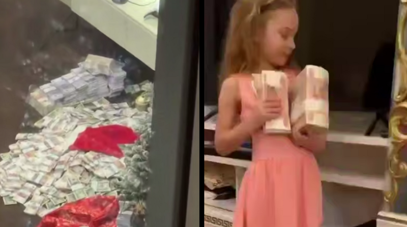 Главной героиней этой невероятной сцены стала маленькая девочка, вероятно, дочь блогеров, которая, как видно на снимках, держала в руках пачки денежных купюр. Эти пачки были аккуратно завернуты, демонстрируя значительный объем наличности, с которой ребенок обращался, как с обычными игрушками .