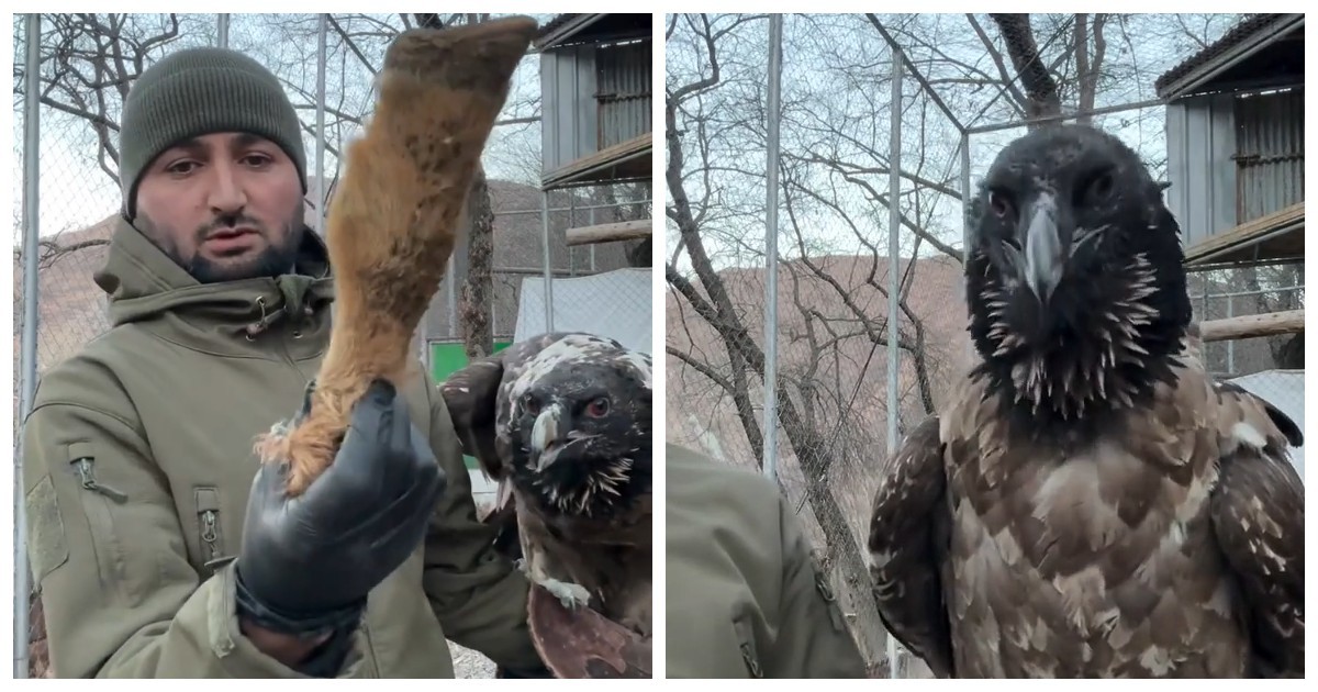 Мужчина показал, как хищная птица проглатывает добычу — Интересные новости