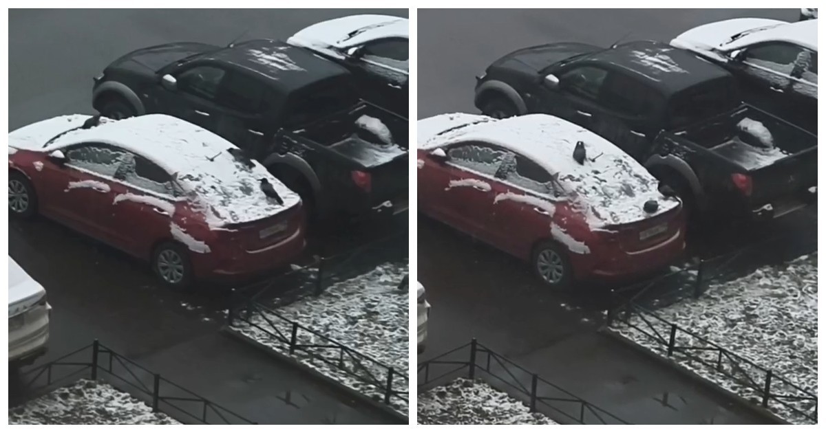В Питере вороны устроили горки на заснеженной машине — Интересные новости