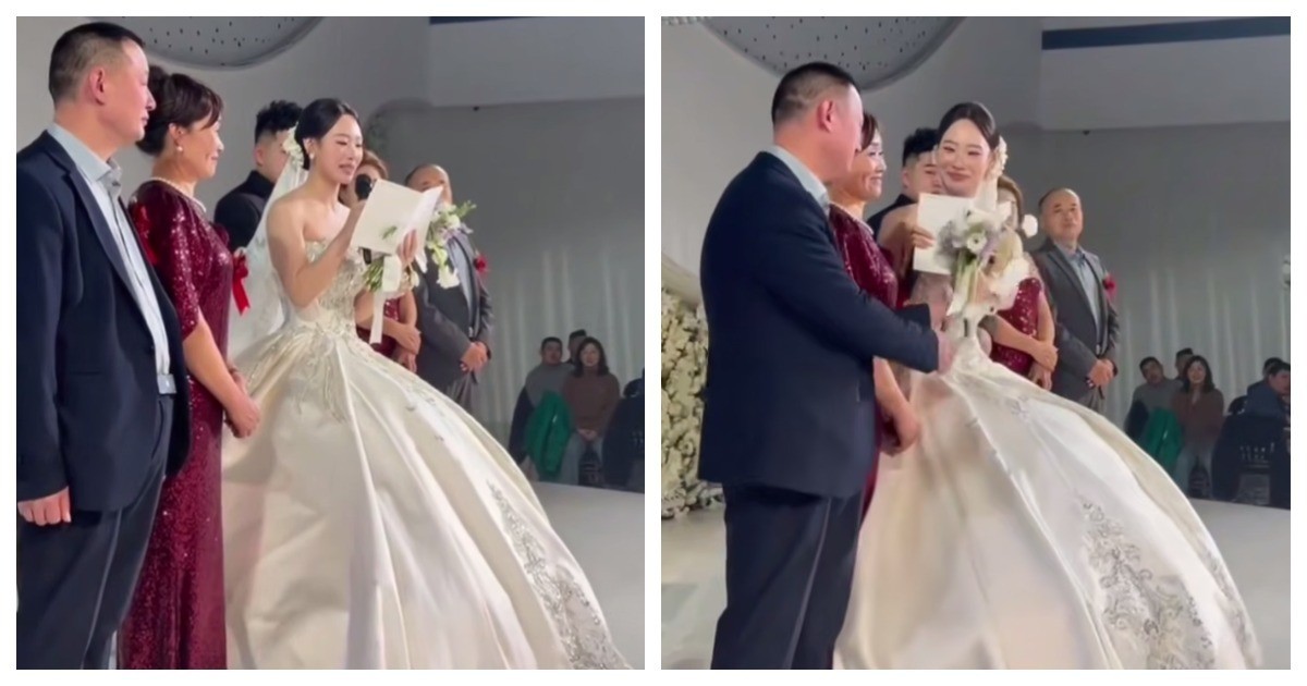 «Я долго думала над тем, кому отдать этот букет, но сегодня я хочу подарить его самому важному мужчине в моей жизни — моему папе… Сегодня твоя дочь не выходит замуж, а скорее начинает жить вместе с тем человеком, который меня любит также, как и ты», — сказала она.