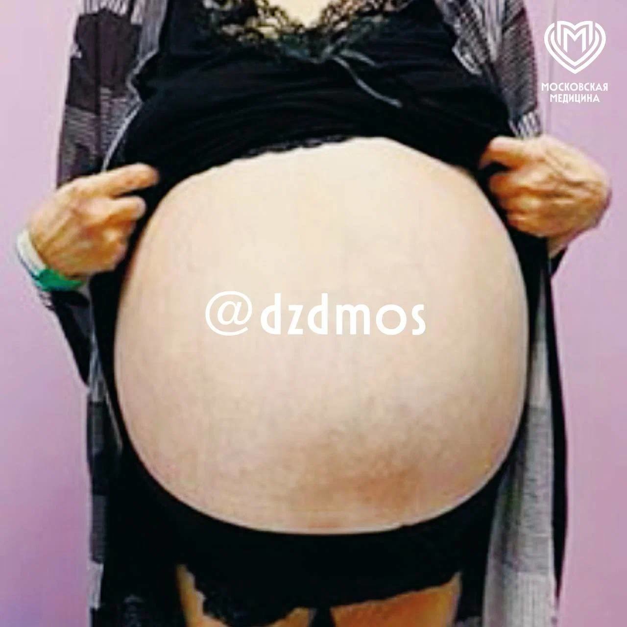 «Окружность живота пациентки достигала 155 см из-за новообразования, занявшего всю брюшную полость. Грудная клетка была деформирована, внутренние органы — сдавлены. Насыщение крови кислородом при минимальной нагрузке падало до 75-80%, как при тяжелой пневмонии», — прокомментировал Александр Ильгизирович Давыдов, д.м.н., профессор, заведующий отделением.