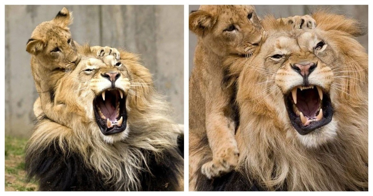 Забавная реакция льва на появление львицы с потомством — Интересные новости
